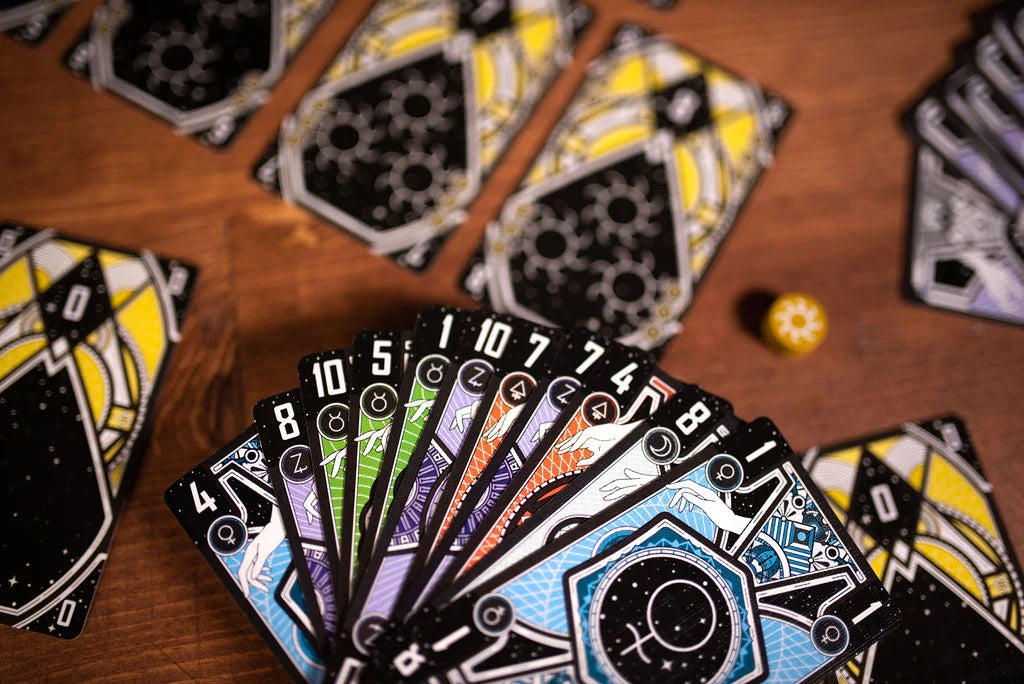 In this competitive trick-taking game you can earn points by either collecting Gold or by correctly bidding how many tricks you will win. However unlike many trick-taking games, Aurum uses a must-not follow card playing system. Cleverly anticipate which cards may be played to win the game!