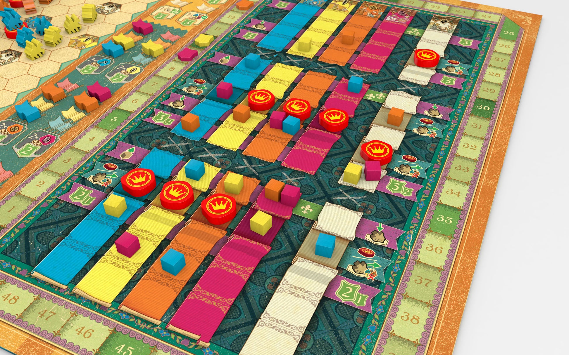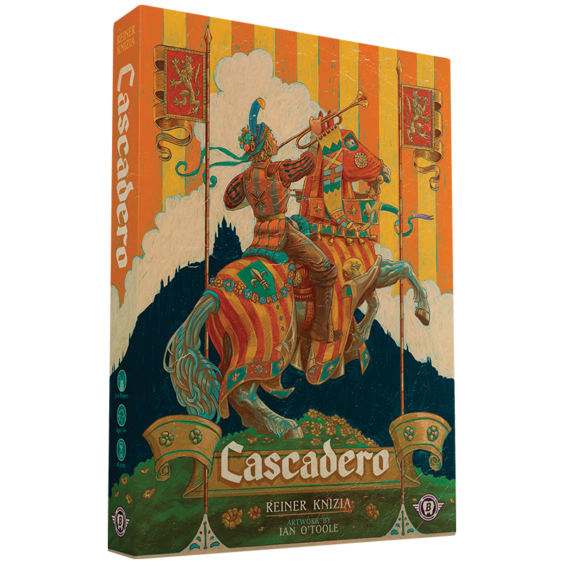 Cascadero is the next epic tile placement strategy game from acclaimed designer Reiner Knizia. Ministers visit towns by placing their envoys adjacent to them; but towns are distrustful of single envoys, so newly placed envoys will only trigger town scoring when they are part of an established group or carry an official seal from El Cascadero himself. Towns with Royal Heralds at them or a history of envoy visits are even more valuable, as they willingly collaborate for even greater successes. Use your wits to rack up successes as you compete to become El Cascadero’s favored minister!