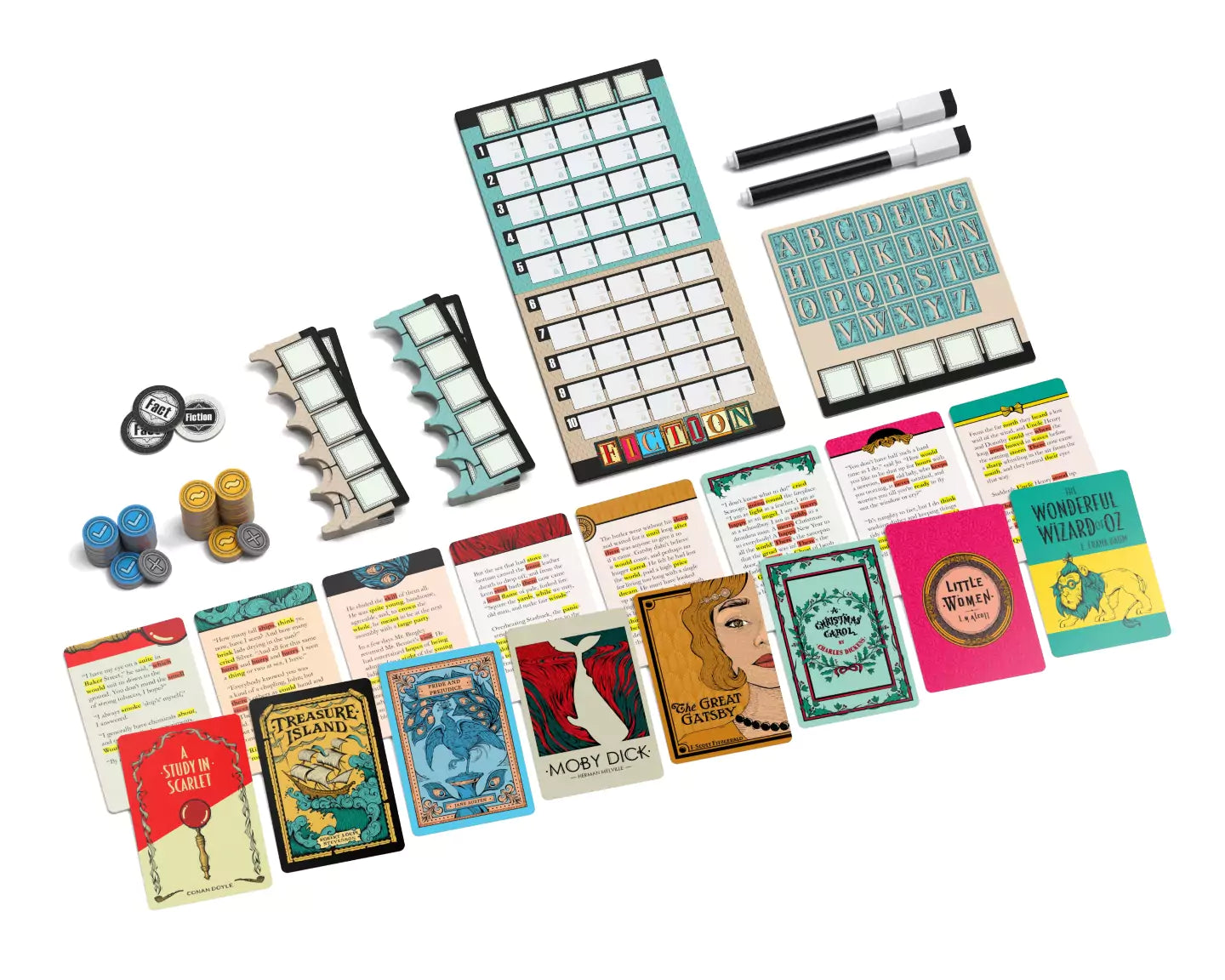 Fiction is a Wordle-inspired game of deception. One player is the Lie-brarian and will choose a secret word from a classic work of literature. All the other players work as a team to guess that secret word as quickly as possible.