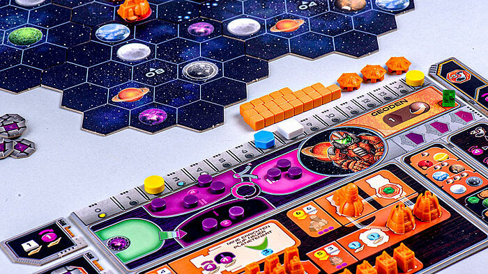 The playing area is made of ten sectors, allowing a variable set-up and thus an even bigger replay value than its predecessor Terra Mystica. A two-player game is hosted on seven sectors.