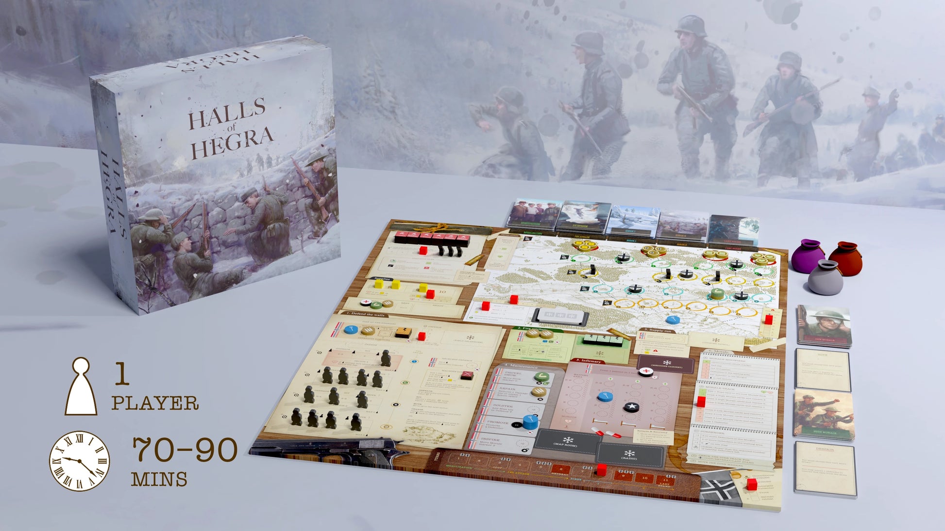 Halls of Hegra is a solo only game in the same vein as Robinson Crusoe, This war of mine and Dead of winter. The mechanics are worker placement, bag building and area control / tower defense.
