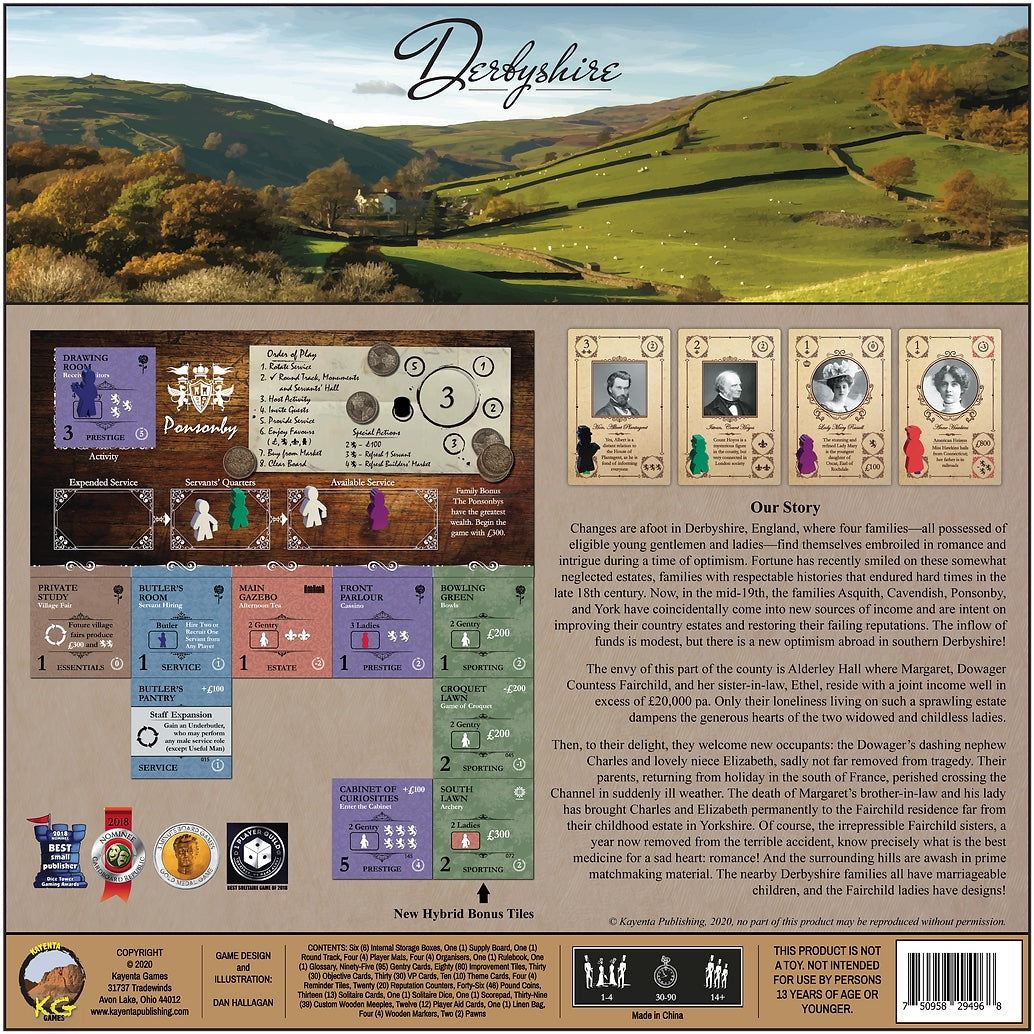 In Obsession, your country estate is represented by a series of game tiles describing rooms and outdoor spaces that have been renovated. These renovations enable the family to host social activities—Fox Hunts, Music Recitals, Formal Dinners, Grand Balls—all the while enhancing your family's reputation in the county and unlocking special abilities.