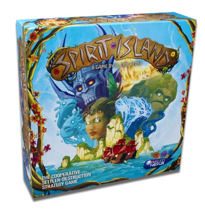 Spirit Island is a cooperative, settler-destruction strategy game for 1 to 4 players designed by R. Eric Reuss and set in an alternate-history world around A.D. 1700. Players are different spirits of the land, each with their own unique elemental powers, forced to defend their island home from colonizing Invaders spreading blight and destruction. Work with your fellow spirits and the native islanders to increase your power and drive the invading colonists from your island in this strategic area-control game.