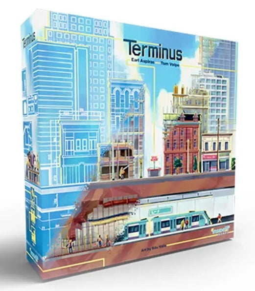 Terminus is a resource management and subway development game for 1 - 5 players, featuring a rondel and variable marketplace.