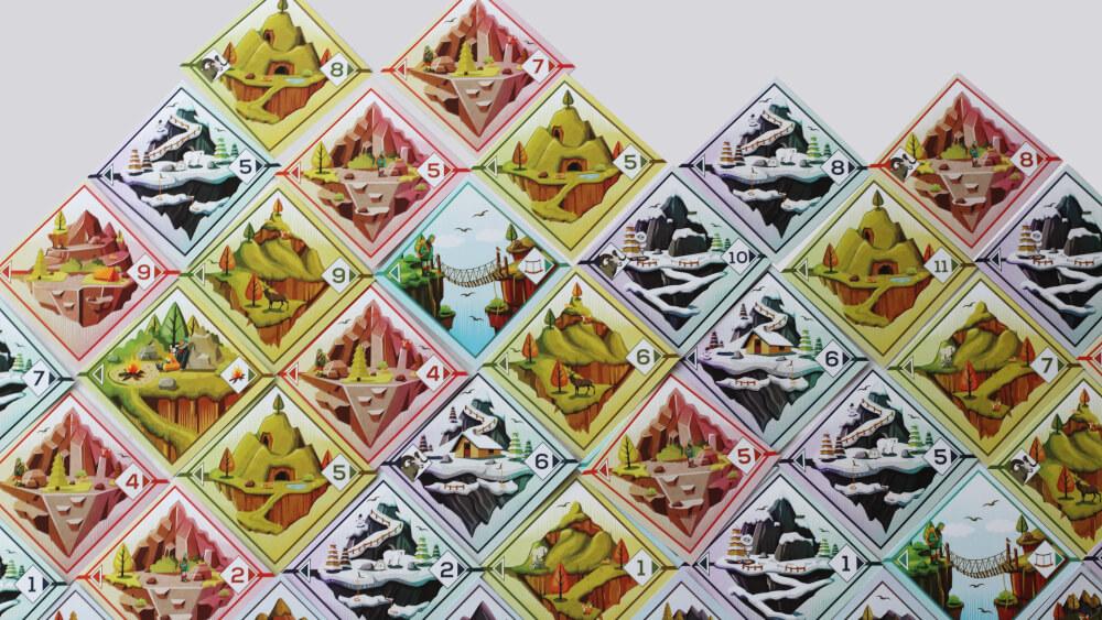 Tranquility: The Ascent includes three mini-expansion modules that can be added separately or together. “The Green Path” requires players to form a continuous path from the bottom to the top of the mountain. “The Panorama” module gives players specific number sequences to photograph. And finally, herd “The Mountain Goats” up to the summit where the grass is greener in the final module.